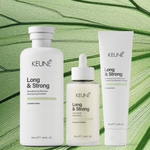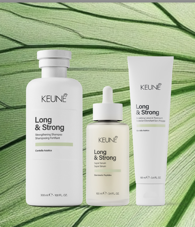 Keune is er trots op om Long & Strong te presenteren, een complete verzorgingsroutine van wortel tot punt, gebaseerd op wetenschap en natuur, om jou de haarlengtes te geven waar je naar verlangt. Deze geavanceerde formule is ontwikkeld om de hoofdhuid te voeden, de lokken te versterken en de natuurlijke haargroei te ondersteunen. Het helpt haarbreuk te verminderen en de dichtheid te verbeteren voor zichtbaar voller haar.